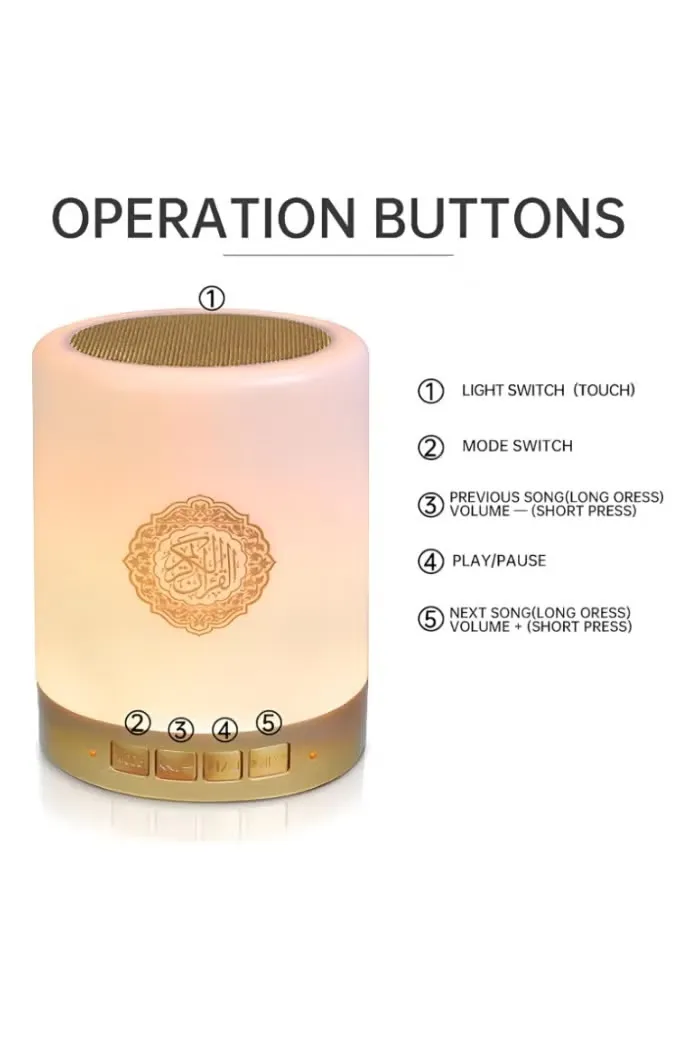 The AREEFA Touch Lamp + Quran Speaker is more than just a lamp – it’s a smart device that seamlessly blends soothing illumination with the power of Quran recitations. Designed for modern Islamic households, this multifunctional tool is perfect for creating a serene environment in your bedroom or prayer space.
