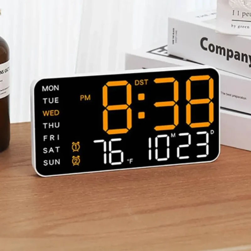 1.LED display, date, week on the same screen display, temperature display, with daylight saving time display.